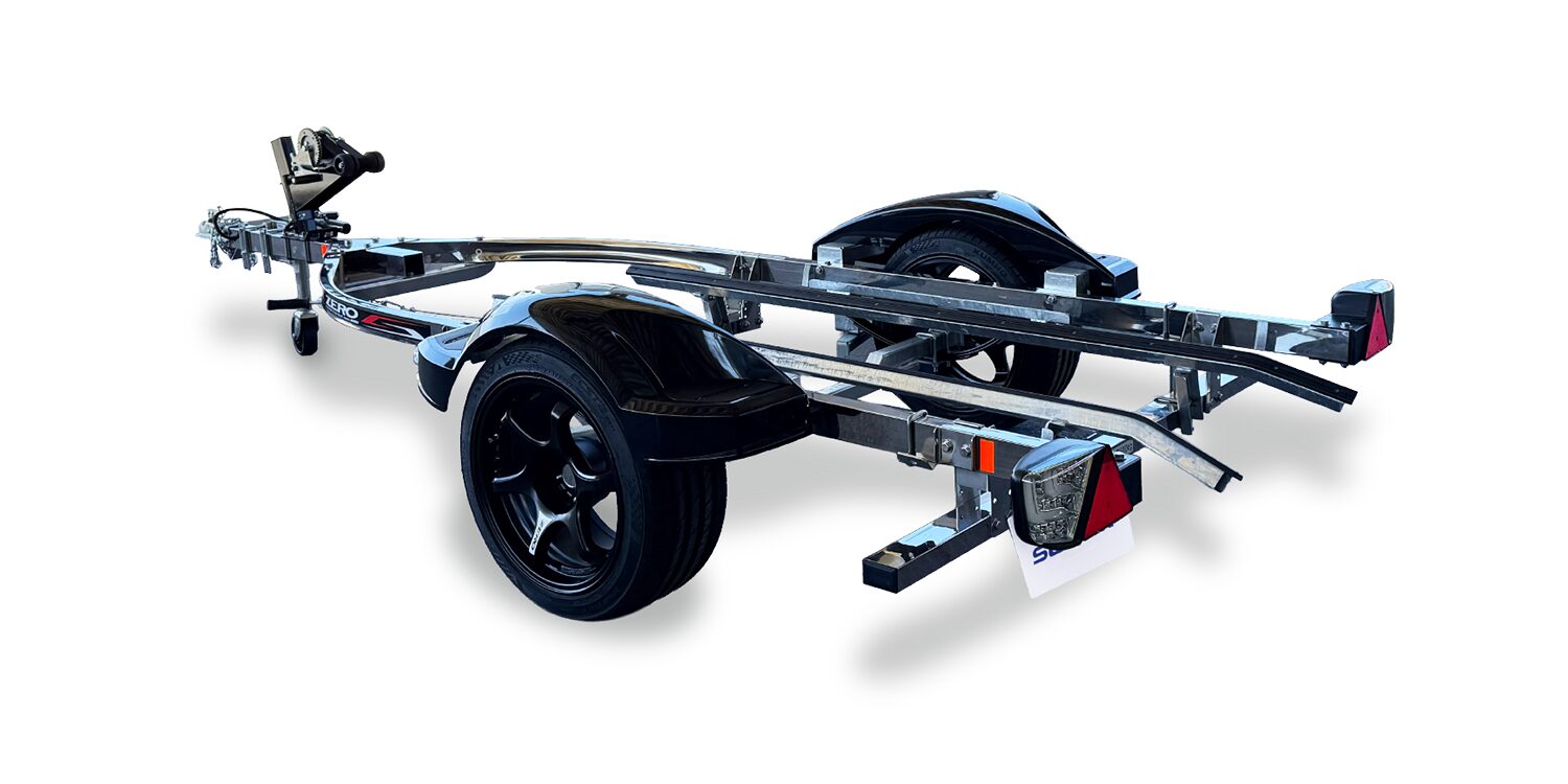 浅瀬のゲレンデでも楽におろせる延長トング付きトレーラー。 ZERO 500BLE ZERO 500Bより 2270mm長い ! 延長トング収納時 延長トングを伸ばしたまま公道走行はできません。 主要諸元 SPECIFICATIONS 最大積載量 500kg 小型 8 ナンバー PWC 1 艇積 フレーム材質電気亜鉛スチール(ウレタン塗装)全長×全幅×全高4700mm×1690mm×860mm車両重量18...