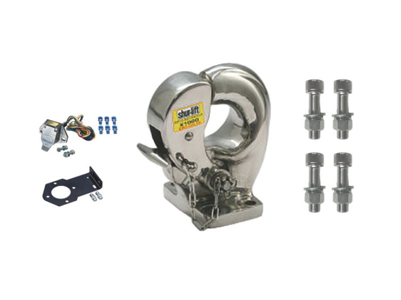 ステンレスピントルフック(8t) NEW 品番TM-006 メーカー希望小売価格46,750円(税込) ステンレス製・パフ研磨仕上げのピントルフックです。高い牽引力を備え、耐久性と見た目の美しさを兼ね備えた仕様です。 牽引力8tステンレス製取付けボルト4本付属配線キット付属配線ブラケット(汎用)付属 オンラインショップ商品ページ