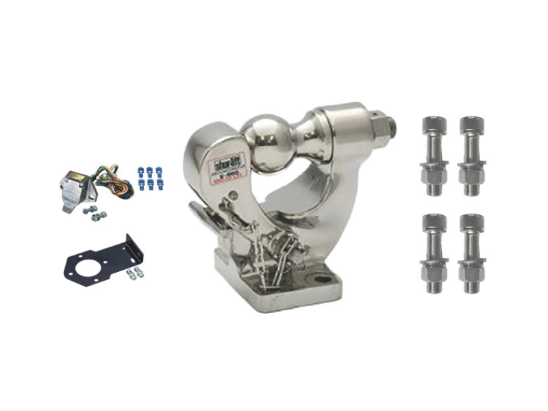 ステンレスボールカプラー(2インチ) NEW 品番ST-003 メーカー希望小売価格33,000円(税込) 取付ボルト&ナット、調整用カラー付属サビに強く、耐久性を重視したい方におすすめ 取付ボルト&ナット(1台分)付属調整用カラー2枚付属 オンラインショップ商品ページ